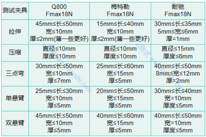 可参考以下建议,1)压缩模式:凝胶、软胶、弹性涂层、泡沫等软弹块体材料,硬质材料无法响应;2)拉伸模式:塑料薄膜、橡胶薄条、胶膜、纤维束等;3)单/双悬臂模式:热塑性塑料、树脂类、橡胶条等硬质材料;4)弯曲模式:金属、玻璃、热塑性塑料、厚橡胶条等;每种模式针对的样品种类有所区别,弹性模量会有差别,如同宏观力学拉伸、压缩、弯曲所得模量不同一样的道理,请谨慎选择测试模式。